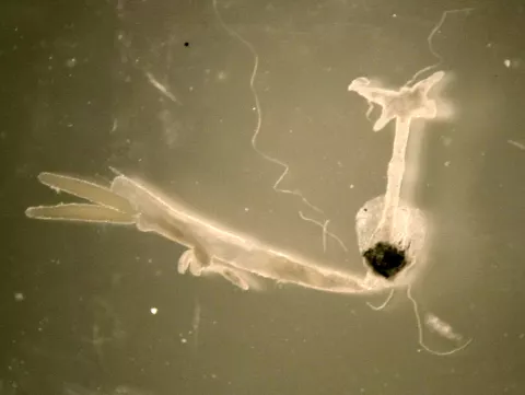 Adult anchor worm.Photographer / IllustratorCraig BannerPathogen Life StageadultImage TypeunstainedLight MicrographBright Field Lernaea (anchor worm)